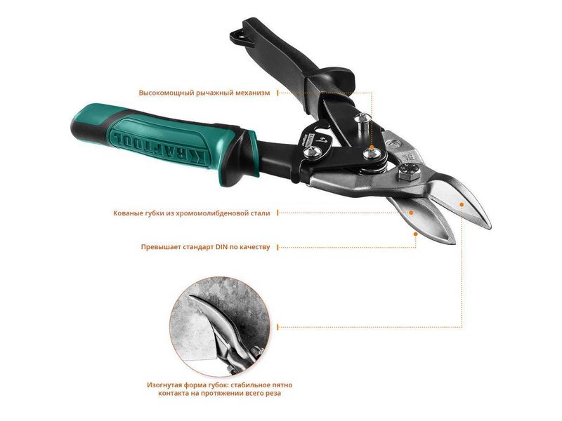 Режущий инструмент Ножницы по металлу ручные Ножницы по металлу рычажные высокомощные KRAFTOOL "Alligator" 260мм, левые, кованая Cr-MO сталь, холоднокатанная сталь – 1,2мм, нерж.сталь – 0,8мм-91