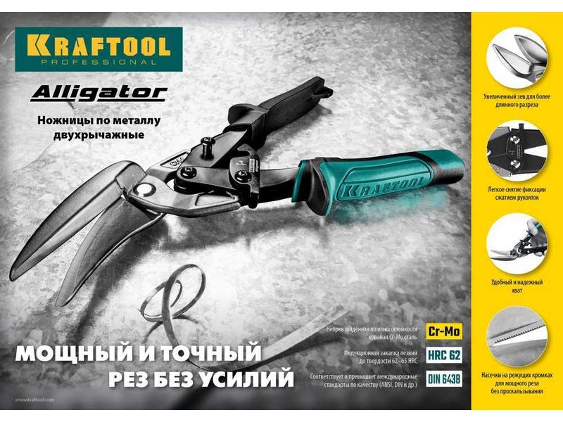 Профессиональные ножницы KRAFTOOL ALLIGATOR, изготовленные из хромомолибденовой стали обладают высокой твердостью режущих кромок и рычажным механизмом