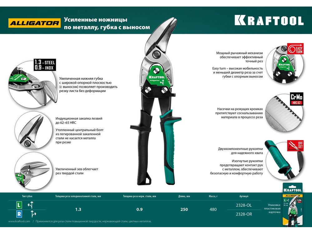 Купить KRAFTOOL Alligator Правые усиленные ножницы по металлу с выносом, 250 мм