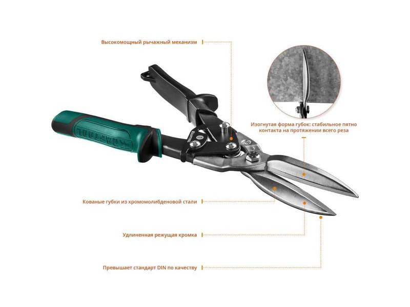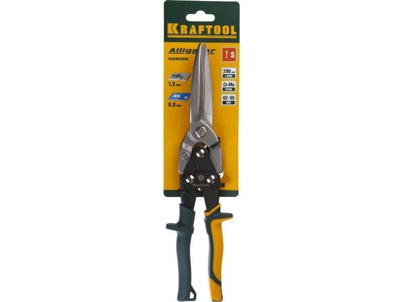 Ножницы по металлу рычажные высокомощные KRAFTOOL "Alligator" 290мм, прямые удлинён, прямой проходн рез,Cr-MO,холоднокат сталь-1,2мм, нерж сталь-0,8мм