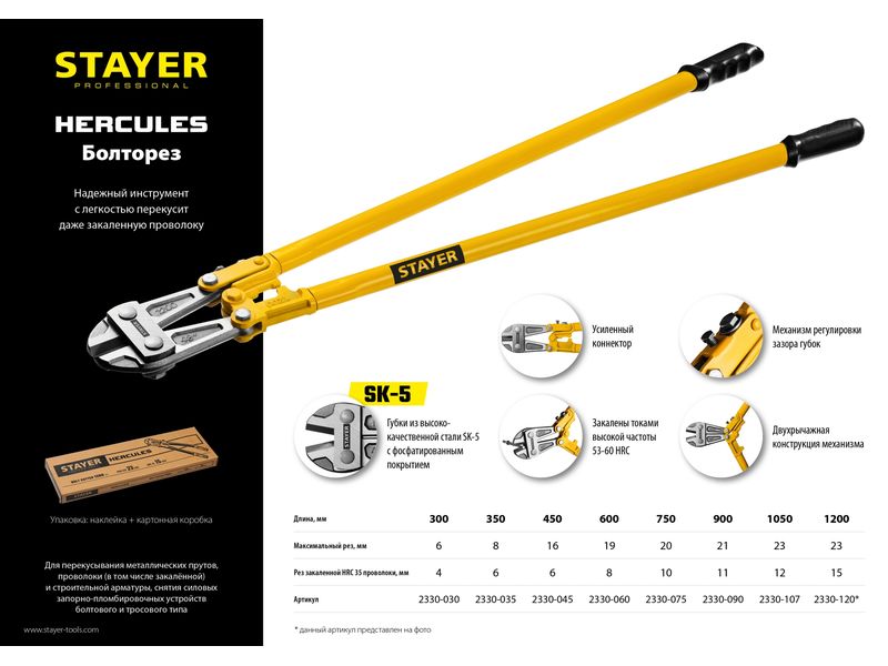 Профессиональный болторез Stayer надежный инструмент для перекусывания металлических и стальных прутков, в том числе закаленных