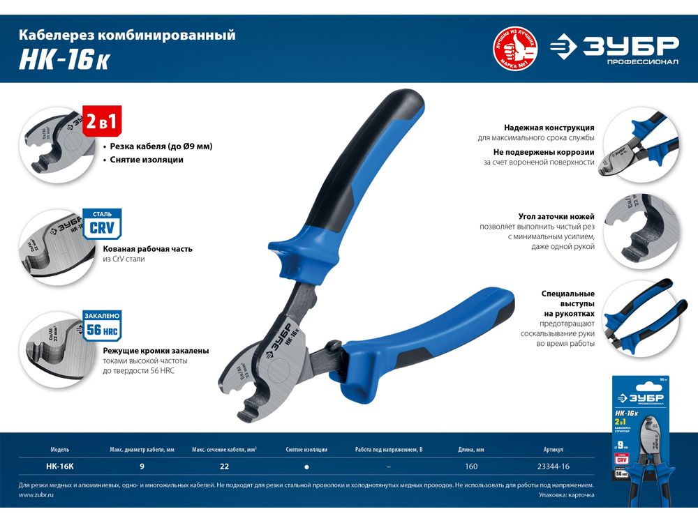 Кабелерезы ЗУБР изготовлены из высококачественной стали, предназначены для профессионального применения. Обладает повышенным ресурсом, обеспечивает высокое качество электромонтажных работ.