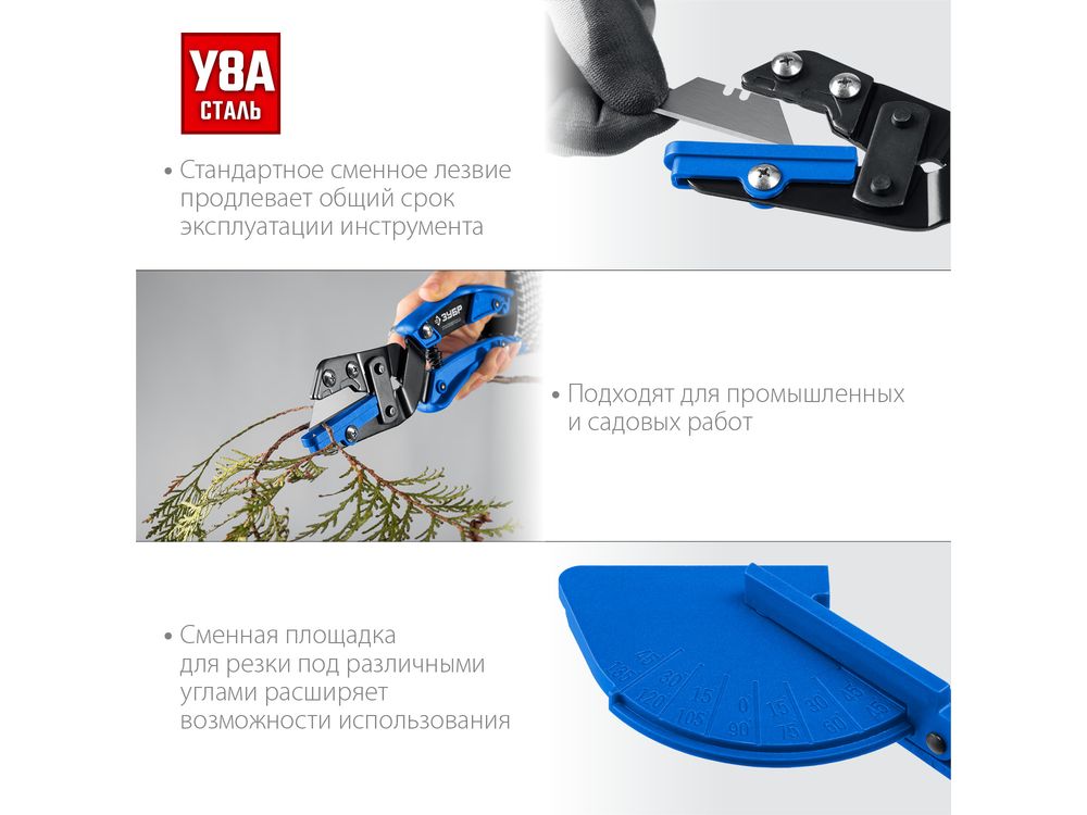 Угловые ножницы ЗУБР Универсал со сменным трапециевидным лезвием, для пластмассовых и резиновых профилей