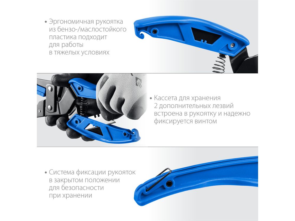 Удобная система фиксации рукояток в закрытом положении повышает безопасность при хранении инструмента.