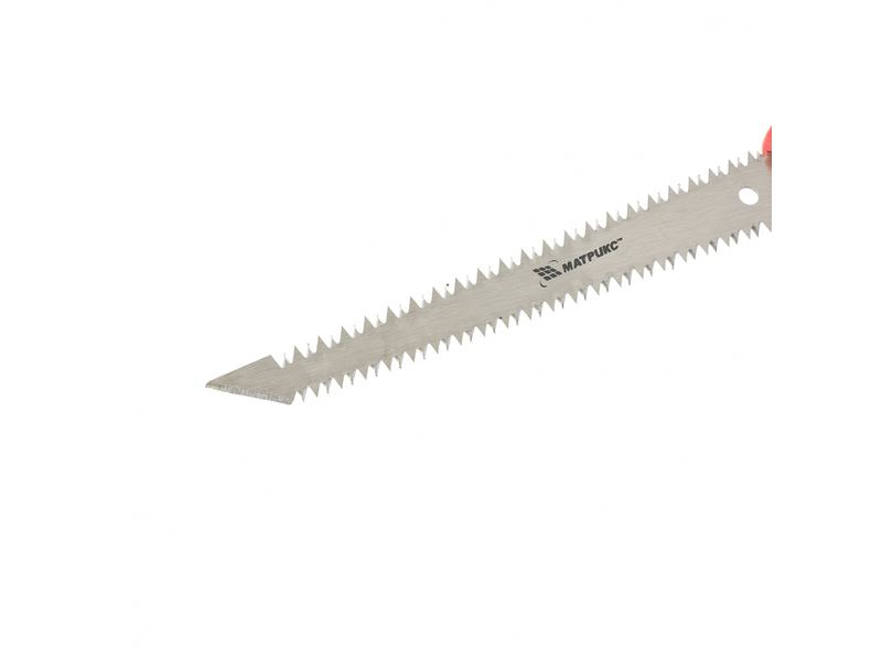 Ножовка Matrix 23392 с полотном длиной 180 мм и двухкомпонентной рукояткой, имеет полотно с двумя рабочими кромками, что облегчает вырезание отверстий и деталей различной формы при выполнении работ по гипсокартону. Зубья с шагом 9 TPI имеют двухгранную заточку, поэтому ножовкой можно пилить в любом направлении, что удобно в условиях ограниченного пространства. Инструмент будет полезен во время проведения ремонтных и отделочных работ.