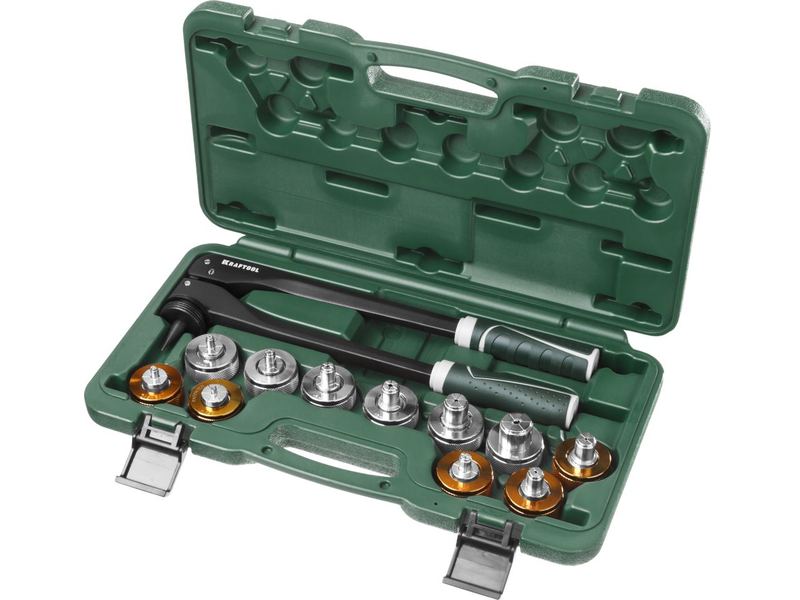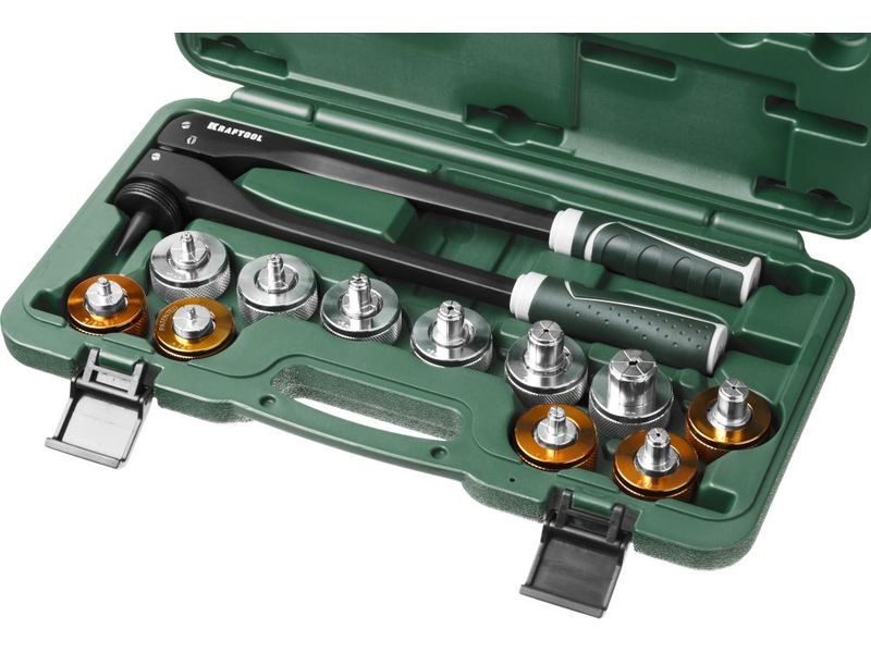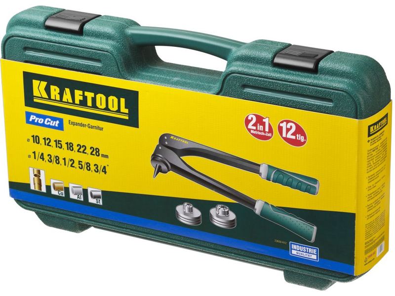 Профессиональный расширитель-калибратор KRAFTOOL разработан в соответствии с высокими требованиями. Конструкция расширяющего механизма гарантирует кондиционное расширение трубы на протяжении всего срока службы. Расширяющая головка состоит из шести лепестков обеспечивающих высокое качество выполнения работ. ПреимуществаИспользованиеИспользуется для калибровки и монтажа труб без использования фитингов в системах водо- и газоснабжения, отопления, кондиционирования и в холодильной технике. применяется для расширения и калибровки труб из мягкой меди, алюминия и тонкостенных стальных труб Характреристики