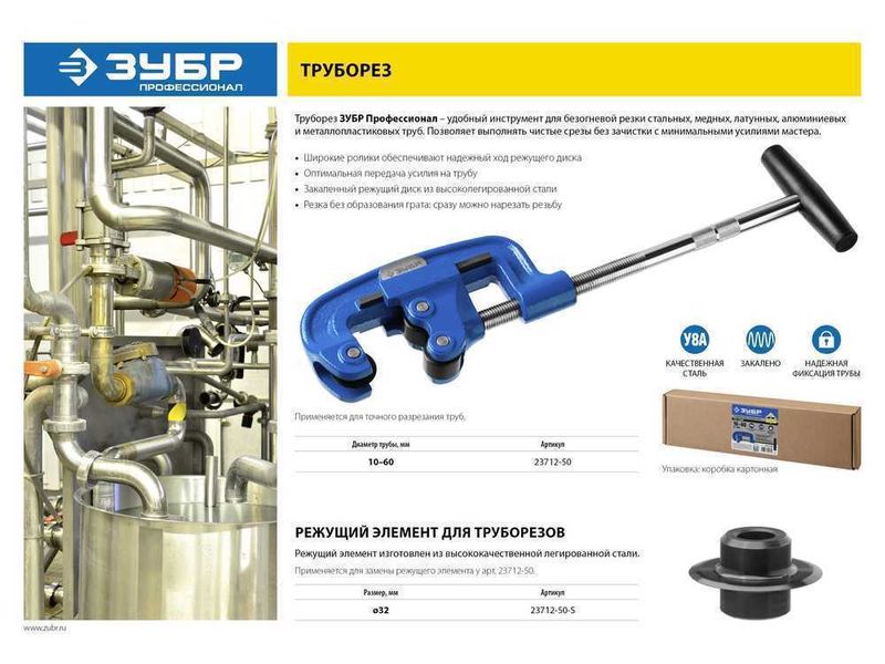 Труборез ЗУБР ПРОФЕССИОНАЛ для стальных труб диаметром 10-60 мм