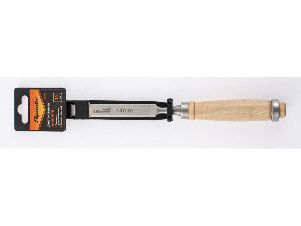 Плоское долото-стамеска 6 мм с деревянной рукояткой предназначено для столярных и плотничных работ- выборка и зачистка небольших прямоугольных пазов, снятия фасок в натуральной древесине любой твердости.Полотно стамески выполнено из конструкционной стали 45 и острозаточена. Твердость инструмента на длине 0,7 рабочей части полотна составляет 45-55 HRC. Рукоятка имеет защитное лакокрасочное покрытие и оборудована металлическим кольцом с тыльной стороны, которое предотвращает раскол дерева при ударах молотком или киянкой.