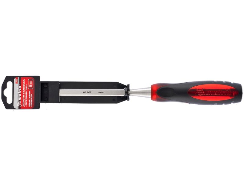 Долото-стамеска Matrix «Тигровый глаз» 24505 с полотном шириной 10 мм и двухкомпонентной обрезиненной рукояткой используется в столярном и плотницком деле, в производстве мебели. Позволяет вырезать углубления, формировать пазы, зачищать шипы и гнезда, снимать фаски. Инструмент выдерживает удары киянкой или молотком, т. к. металлический затыльник защищает его от деформации. Долото относится к профессиональному ручному инструменту, но может применяться и в домашних условиях.