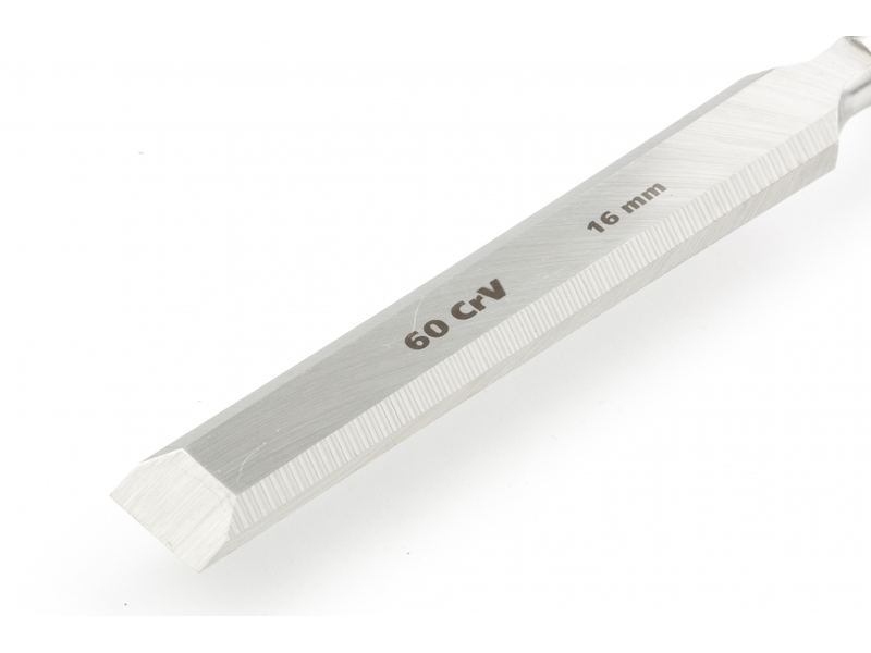 Длительное сохранение режущих свойств — долото-стамеска обладает твердостью 65 HRC (0,7 длины рабочей части полотна), острое, как бритва, лезвие обработано на заводе под углом 20-35°, повторная заточка потребуется минимум через 6 месяцев.