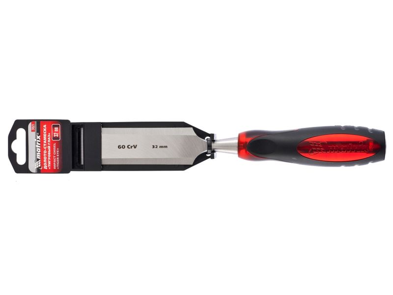 Долото-стамеска Matrix «Тигровый глаз» 24521 с полотном шириной 32 мм и двухкомпонентной обрезиненной рукояткой используется в столярном и плотницком деле, в производстве мебели. Позволяет вырезать углубления, формировать пазы, зачищать шипы и гнезда, снимать фаски. Инструмент выдерживает удары киянкой или молотком, т. к. металлический затыльник защищает его от деформации. Долото относится к профессиональному ручному инструменту, но может применяться и в домашних условиях.