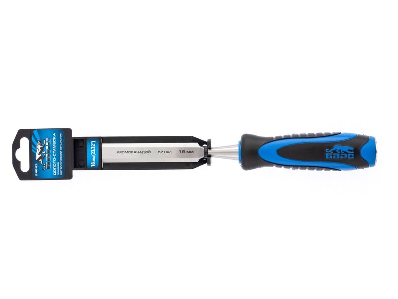 Плоское долото-стамеска Барс 24643 с шириной режущей части 18 мм, с двухкомпонентной рукояткой и металлическим затыльником, предназначено для выборки прямоугольных пазов, снятия фасок, обработки шиповых соединений и выполнения других столярно-плотницких работ. Используется для работы с массивом дерева любой твердости. По затыльнику рукоятки можно наносить удары киянкой или небольшим молотком, поэтому инструмент легко погружается в древесину и обеспечивает аккуратный ровный контур среза.