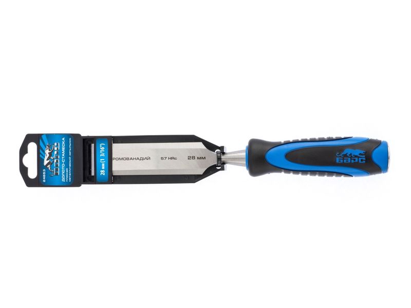 Плоское долото-стамеска Барс 24653 с шириной режущей части 28 мм, с двухкомпонентной рукояткой и металлическим затыльником, предназначено для выборки прямоугольных пазов, снятия фасок, обработки шиповых соединений и выполнения других столярно-плотницких работ. Используется для работы с массивом дерева любой твердости. По затыльнику рукоятки можно наносить удары киянкой или небольшим молотком, поэтому инструмент легко погружается в древесину и обеспечивает аккуратный ровный контур среза.
