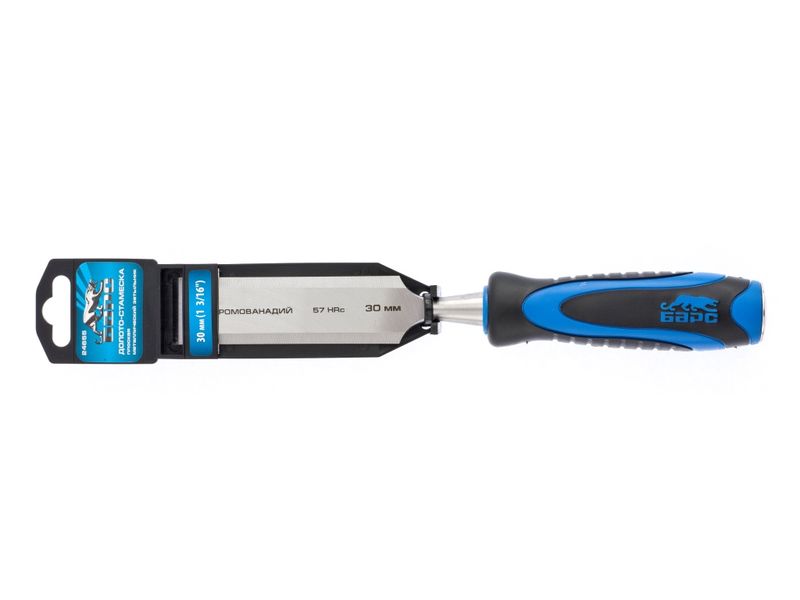 Плоское долото-стамеска Барс 24655 с шириной режущей части 30 мм, с двухкомпонентной рукояткой и металлическим затыльником, предназначено для выборки прямоугольных пазов, снятия фасок, обработки шиповых соединений и выполнения других столярно-плотницких работ. Используется для работы с массивом дерева любой твердости. По затыльнику рукоятки можно наносить удары киянкой или небольшим молотком, поэтому инструмент легко погружается в древесину и обеспечивает аккуратный ровный контур среза.