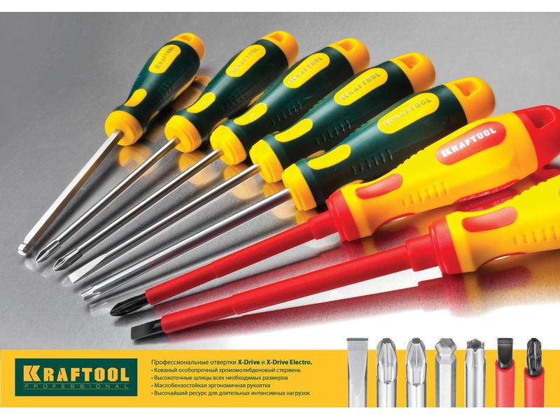 Профессиональные отвертки KRAFTOOL X-Drive изготовлены из высокопрочной Cr-Mo стали. Специальная закалка стержня и система насечек NSS обеспечивают удобство работы и длительный срок службы