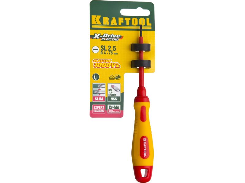 Профессиональная диэлектрическая отвертка для проведения слесарно-монтажных работ. Стержень изготовлен их хромомолибденовой стали на высокоточном оборудовании
