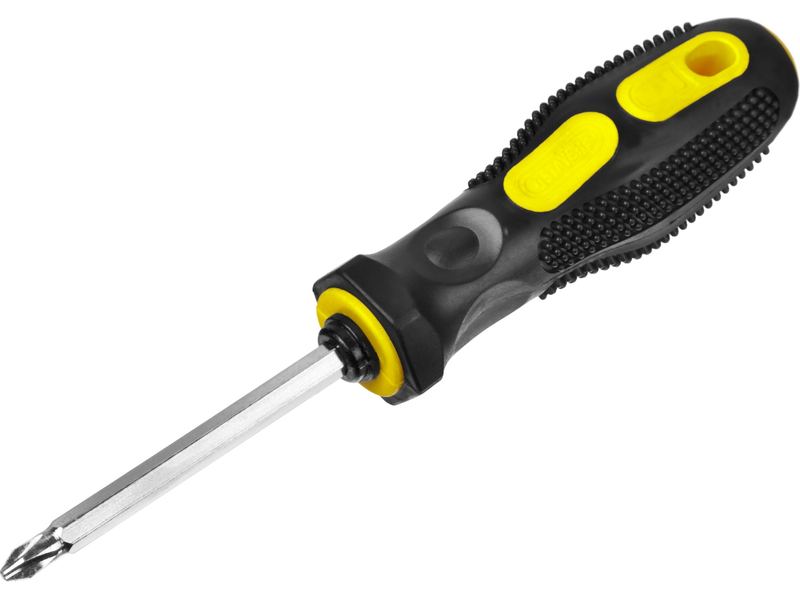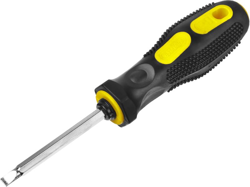 Отвертка STAYER с двухкомпонентной рукояткой позволяет максимально эффективно передать крутящий момент от руки к профилю крепежа.