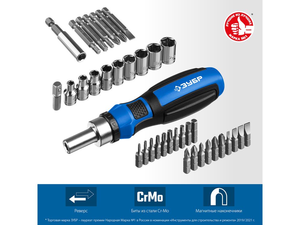 ЗУБР. Набор: Отвертка с насадками, Cr-V сталь, в компактном боксе