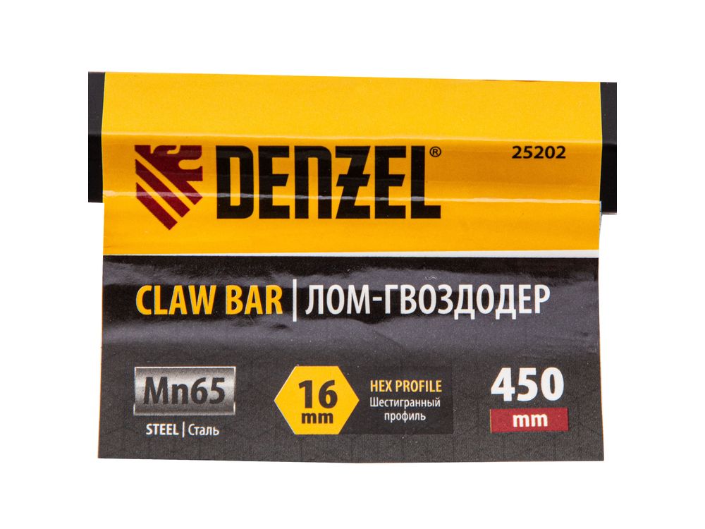 Лом-гвоздодер Denzel 25202 длиной 450 мм, из стали 65, с шестигранным профилем размером 16 мм и окрашенной поверхностью, предназначен для извлечения гвоздей и демонтажа различных конструкций. Изготовлен из проката шестигранного сечения и выдерживает повышенные нагрузки. Инструмент используется для проведения ремонтных и демонтажных работ.