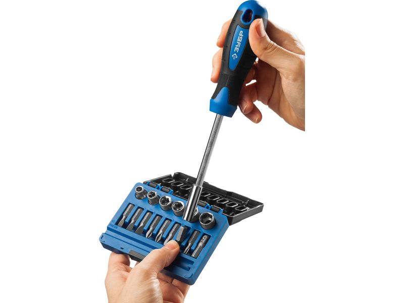Компактная универсальная отвертка-битодержатель с набором бит и головок. Выдерживают высокие нагрузки благодаря высококачественной хромомолибденовой стали, закаленной по особой технологии.