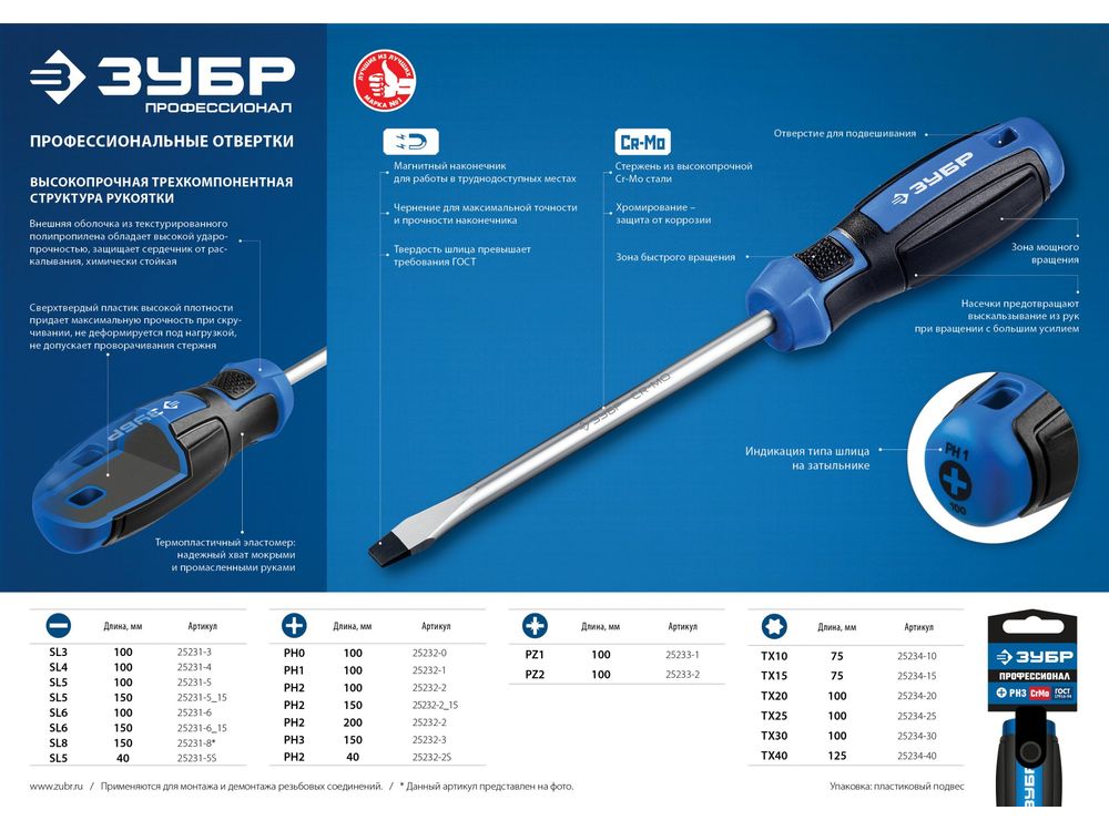 ЗУБР Профессионал SL4x100 отвертка-18