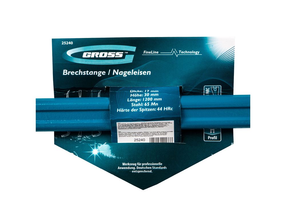 Лом-гвоздодер Gross 25240 размером 1200 х 30 х 17 мм, с двутавровым профилем, используется для извлечения гвоздей. Демонтажная рабочая часть позволяет разбирать деревянную тару, заборы, кровлю и другие конструкции. Также инструмент может применяться в качестве рычага для поднятия и перемещения тяжеловесных грузов: двутавровый профиль устойчив к изгибающим нагрузкам при повороте на 90°. Лом-гвоздодер будет полезен при проведении строительных и ремонтных работ, пригодится также и в домашнем хозяйстве.