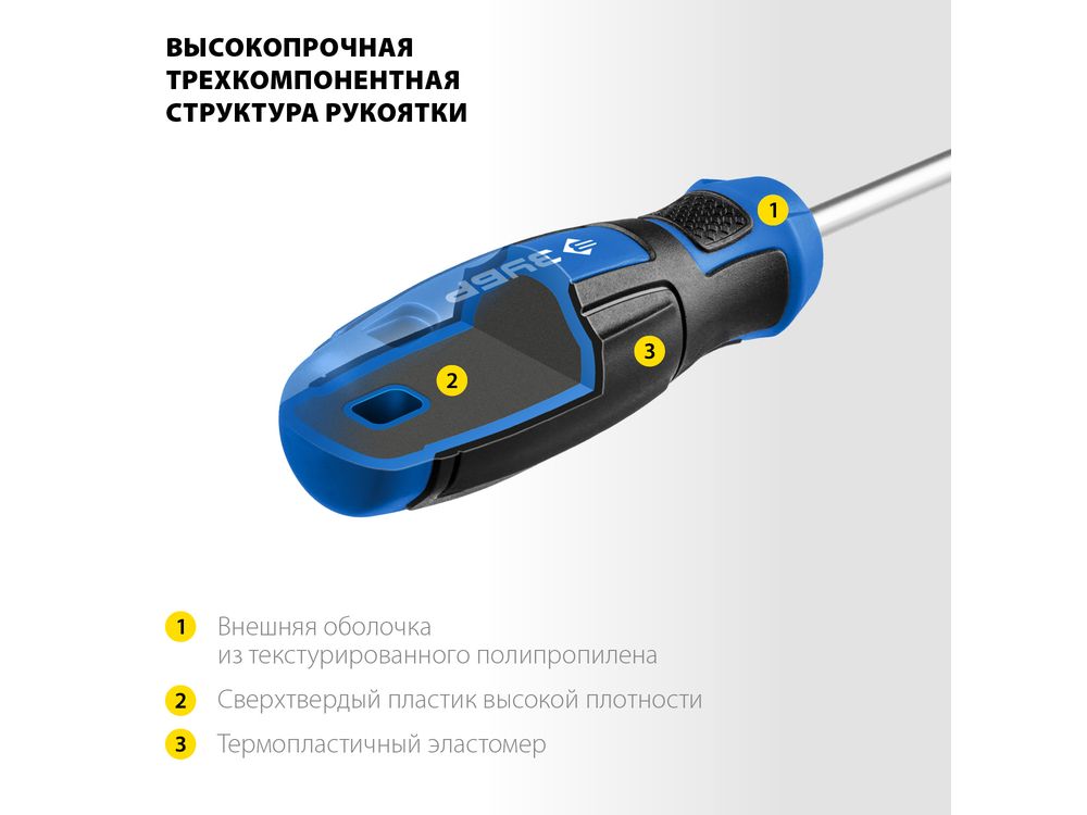 Мощная трехкомпонентная рукоятка обеспечивает надежный и комфортный хват