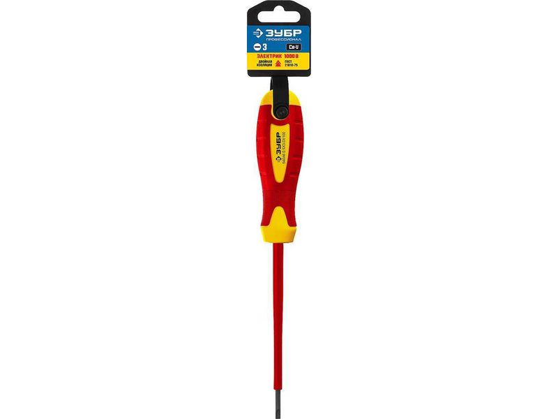 Купить Отвертка диэлектрическая до 1000В, ЗУБР "Профессионал" "ПРОФИ ЭЛЕКТРИК" 25261-3.0-075, Cr-V, трехкомпонент рукоятка, SL 3 x 100 мм