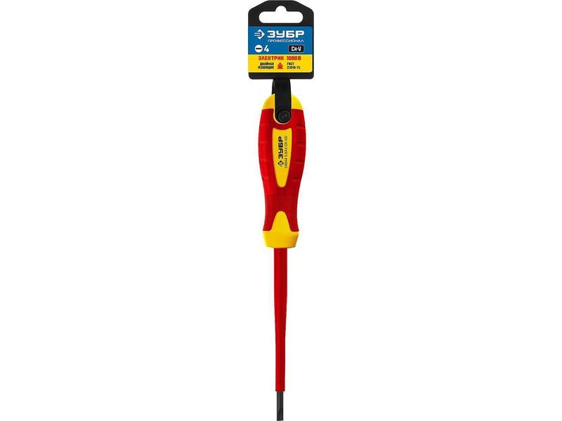 Купить Отвертка диэлектрическая до 1000В, ЗУБР "ПРОФЕССИОНАЛ" "ПРОФИ ЭЛЕКТРИК" 25261-4.0-100, Cr-V, трехкомпонент рукоятка, SL 4 x 100 мм