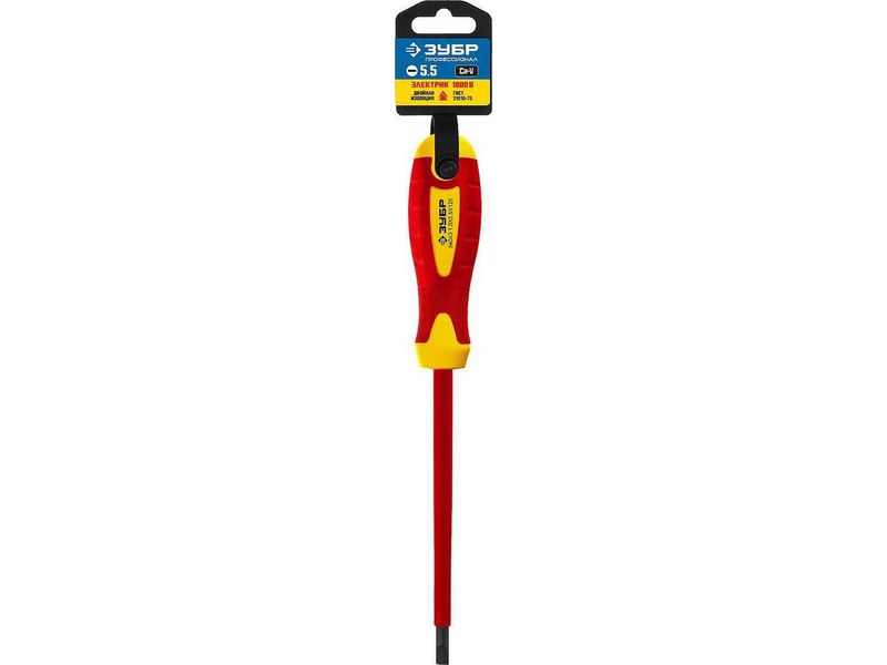 Купить Отвертка диэлектрическая до 1000В, ЗУБР "ПРОФЕССИОНАЛ" "ПРОФИ ЭЛЕКТРИК" 25261-5.5-125, Cr-V, трехкомпонент рукоятка, SL 5 x 125 мм