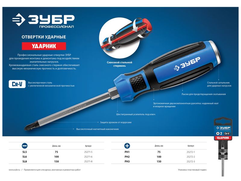 Отвертка ударная, сквозной Cr-V стержень, SL8 x 150 мм, усилитель под ключ, магнитный наконечник, двухкомп. рукоятка, ЗУБР Профессионал, УДАРНИКОтвертка ударная, сквозной Cr-V стержень, SL8 x 150 мм, усилитель под ключ, магнитный наконечник, двухкомп. рукоятка, ЗУБР Профессионал, УДАРНИКОтвертка ударная, сквозной Cr-V стержень, SL8 x 150 мм, усилитель под ключ, магнитный наконечник, двухкомп. рукоятка, ЗУБР Профессионал, УДАРНИКОтвертка ударная, сквозной Cr-V стержень, SL8 x 150 мм, усилитель под ключ, магнитный наконечник, двухкомп. рукоятка, ЗУБР Профессионал, УДАРНИК