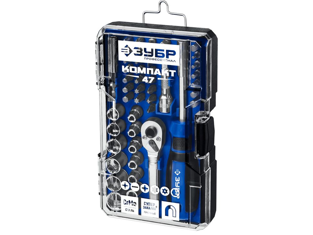 ЗУБР Компакт-47 набор: отвертка-битодержатель с насадками 47 шт-18