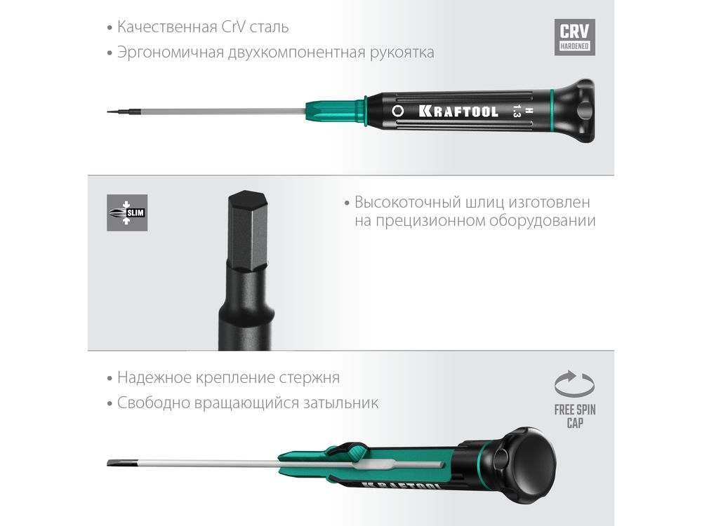Precision отвертка для точных работ HEX1.3, KRAFTOOL
