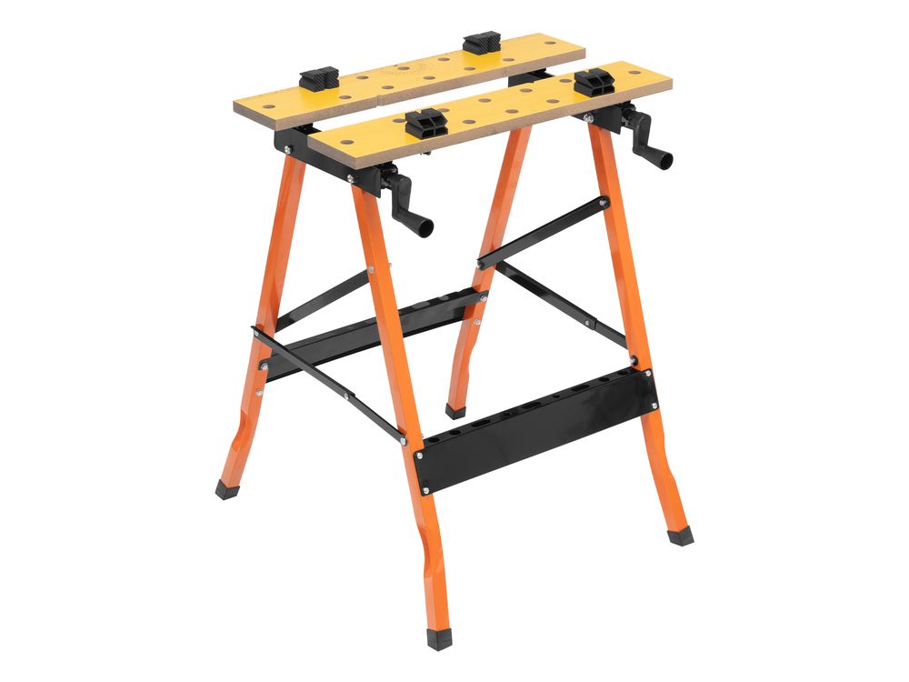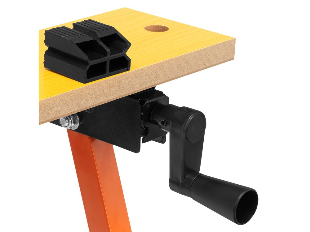 Портативный верстак-тиски Sparta 257065 размером 605 х 635 х 750 мм служит для зажимания заготовок и используется для выполнения столярных и слесарных работ. Столешница верстака представляет собой тиски из двух раздельных блоков, которые позволяют фиксировать даже детали с непараллельными гранями. Верстак пригодится дома и в частной мастерской. Приспособление необходимо устанавливать на ровной поверхности для максимальной устойчивости и исключения травм из-за несоблюдения техники безопасности.