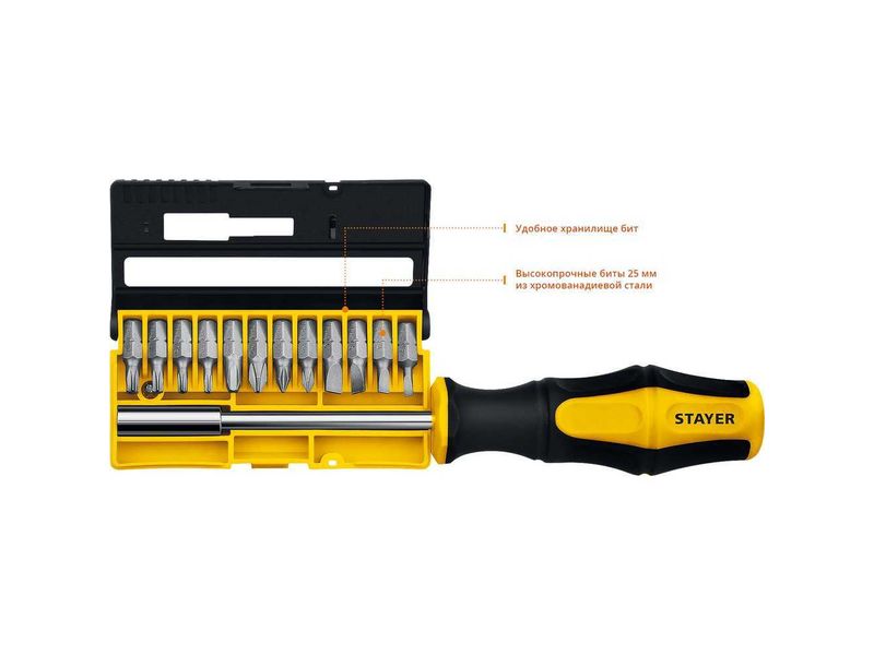 Набор: Отвертка-битодержатель STAYER MASTER HERCULES 25813, Cr-V сталь, двухкомпонентная рукоятка, 13 предметовНабор: Отвертка-битодержатель STAYER MASTER HERCULES 25813, Cr-V сталь, двухкомпонентная рукоятка, 13 предметовНабор: Отвертка-битодержатель STAYER MASTER HERCULES 25813, Cr-V сталь, двухкомпонентная рукоятка, 13 предметовНабор: Отвертка-битодержатель STAYER MASTER HERCULES 25813, Cr-V сталь, двухкомпонентная рукоятка, 13 предметов