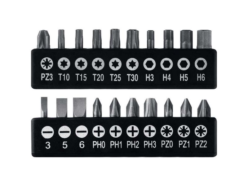 • Набор высококачественных бит из Cr-V стали