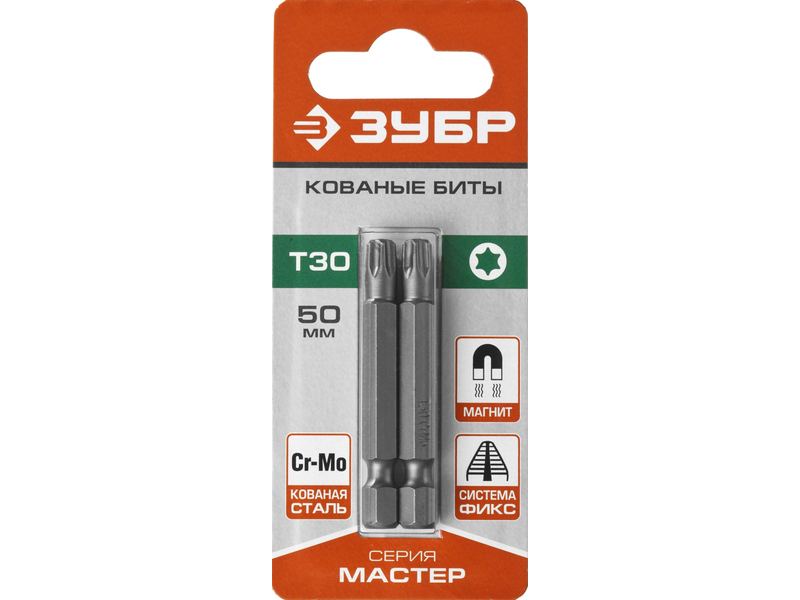 Биты ЗУБР "МАСТЕР", тип хвостовика С 1/4", 50мм, T30, 2шт-591