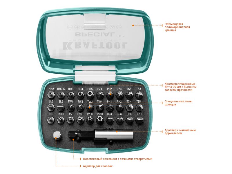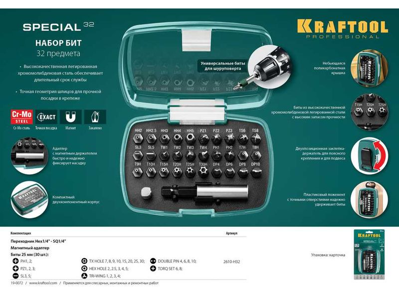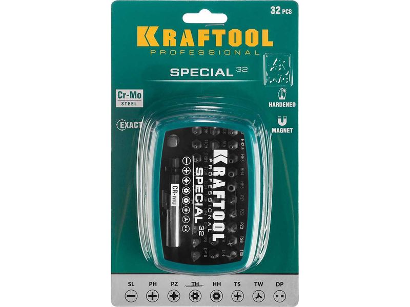 Набор специальных бит SPECIAL-32, 32 предмета, Cr-Mo, KRAFTOOL 2610-H32