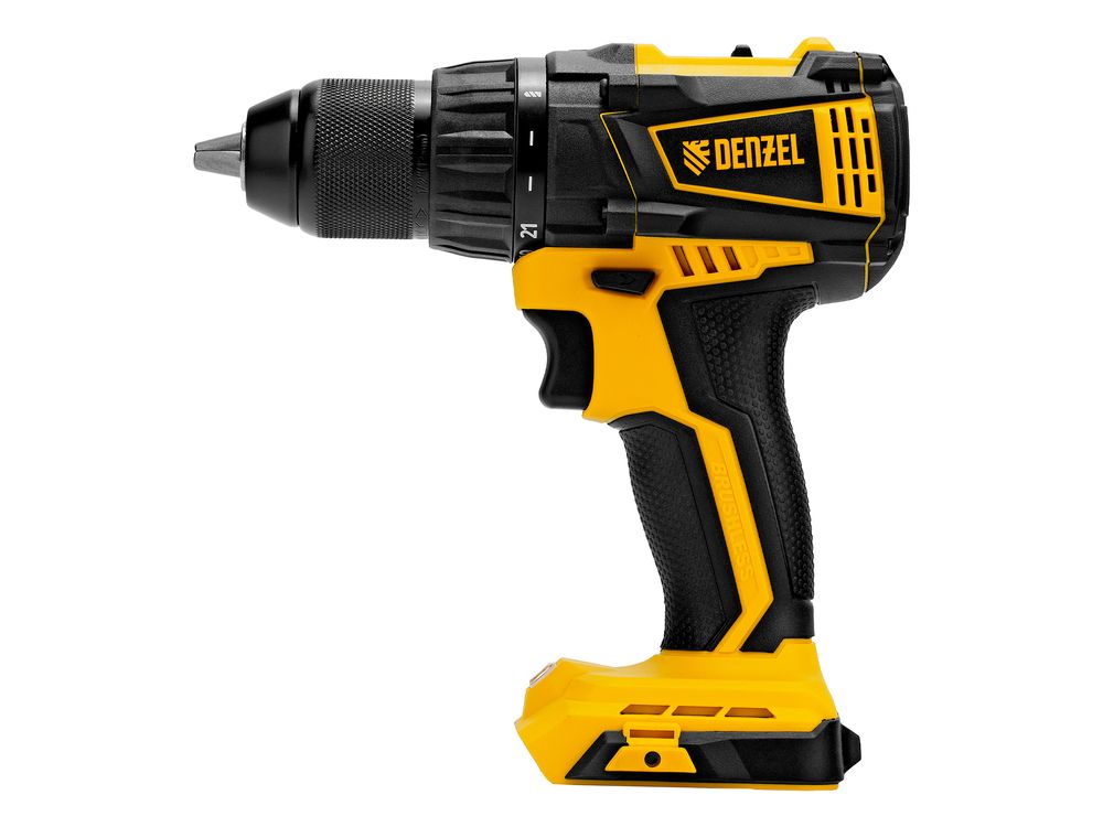 Универсальность — дрель-шуруповерт совместима с любым Li-Ion аккумулятором и зарядным устройством единой платформы Denzel Battery System 18V.