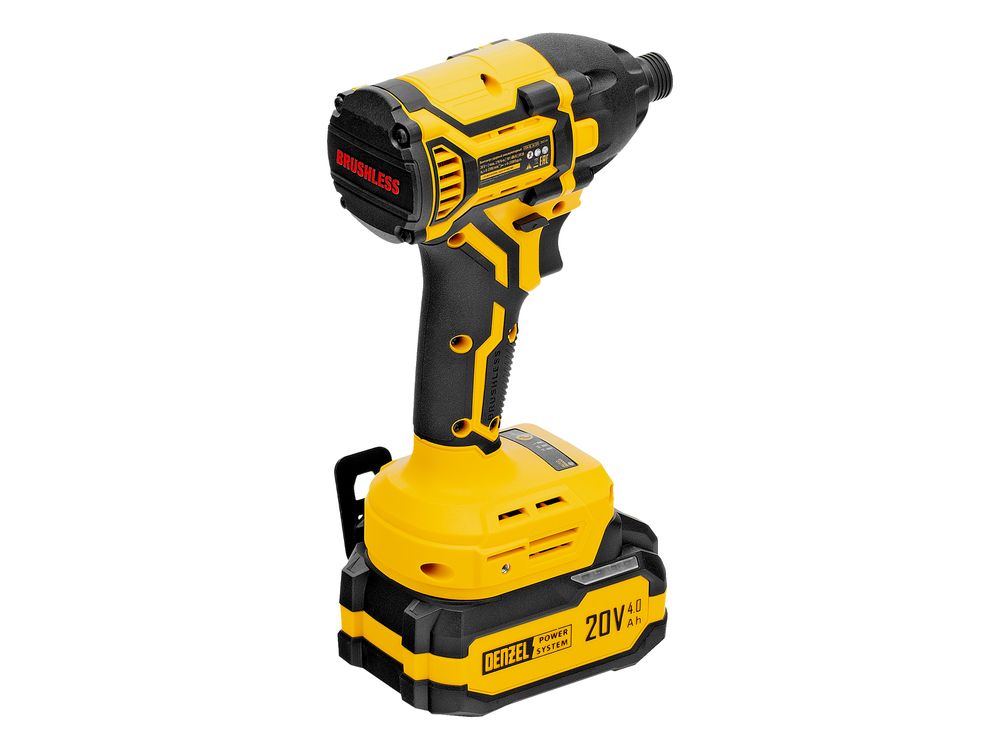 Аккумуляторный ударный винтоверт Denzel CIDH-BL-20-270 26514 с бесщеточным двигателем работает от аккумулятора Li-Ion 20 В и предназначен для работы с резьбовым крепежом: винтами, шурупами, гайками. Максимальный крутящий момент достигает 270 Н·м, что позволяет эффективно решать поставленные задачи. Частота вращения шпинделя плавно регулируется в пределах установленного диапазона путем изменения степени нажатия на клавишу выключателя — такое решение облегчает настройку оптимального режима работы. Ударный механизм позволяет успешно справляться с туго затянутым или заржавевшим крепежом.