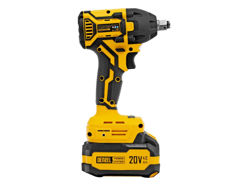 Аккумуляторный ударный гайковерт Denzel CIWH-BL-20-350 26520 с бесщеточным двигателем работает от аккумулятора Li-Ion 20 В и используется для закручивания и откручивания гаек, болтов и другого резьбового крепежа. Доступно 3 режима работы, при которых частота вращения шпинделя составляет 0-1500, 0-2000 и 0-2500 об/мин, а частота ударов — 0-2100, 0-2800 и 0-3500 уд/мин. Реализована функция электронной регулировки частоты вращения в зависимости от степени нажатия на клавишу пуска, что позволяет установить оптимальную скорость и усилие затяжки. Максимальный крутящий момент составляет 350 Н·м — этого достаточно для эффективного решения поставленных задач. Ударный механизм упрощает работу с туго затянутым и заржавевшим крепежом.