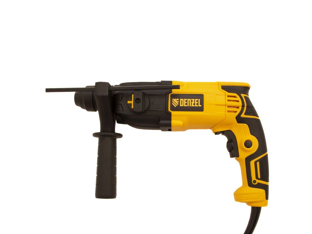 Электрический перфоратор Denzel RH-650-18 26603 мощностью 650 Вт, с патроном под хвостовик SDS-plus, имеет 3 плюс 1 режим, развивает энергию удара 2,0 Дж и используется для проведения отделочных и монтажных работ в режиме сверления, бурения и долбления. Эффективно работает с твердыми материалами. Максимальный диаметр отверстий в бетоне составляет 18 мм, в древесине — 30 мм, металле — 13 мм.