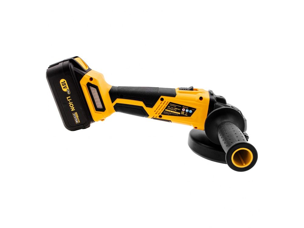 Аккумуляторная углошлифовальная машина Denzel BLG-IB-18-125 27003, с аккумулятором Li-ion 18 В, используется для выполнения отрезных, шлифовальных и зачистных работ. Усовершенствованная система вентиляции не допускает попадания пыли на ротор и статор двигателя, поэтому УШМ можно использовать даже для тяжелых работ с камнем и бетоном. Автономную работу обеспечивает аккумулятор емкостью 3 А/ч. Бесщеточная конструкция двигателя имеет ряд преимуществ перед щеточными аналогами: высокие производительность и КПД, большой ресурс и простое обслуживание. Благодаря небольшому весу 1, 24 кг УШМ легко удерживать одной рукой, что позволяет работать в труднодоступных местах и ограниченном пространстве. Преимущества :Быстрая замена оснастки благодаря опции блокировки шпинделя и бесключевой системе крепления кожуха. Положение боковой рукоятки меняется (слева, справа, сверху) для удобства работы под разными углами. Опция плавного пуска позволяет избежать рывков и перегрузки сети при включении. Фиксатор клавиши пуска обеспечивает комфортную работу: кнопку не нужно постоянно держать. Для удобства предусмотрен индикатор заряда, поэтому непредвиденной остановки работы не произойдет. Защита от глубокого разряда увеличивает ресурс аккумулятора, а благодаря интеллектуальной системе распознавания нагрузки заряд тратится экономично. АКБ совместима со всеми инструментами на единой аккумуляторной платформе 18V Denzel Battery System. В комплект входит зарядное устройство с технологией быстрой зарядки, поэтому аккумуляторная батарея полностью заряжается за 1 час. Прорезиненная рукоятка обеспечивает надежный хват и снижает уровень вибраций. Гарантия 3 года.