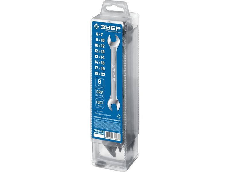 Купить Набор рожковых гаечных ключей 8 шт, 6 - 22 мм, ЗУБР