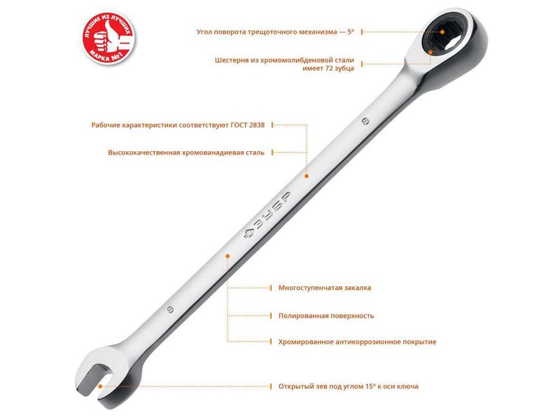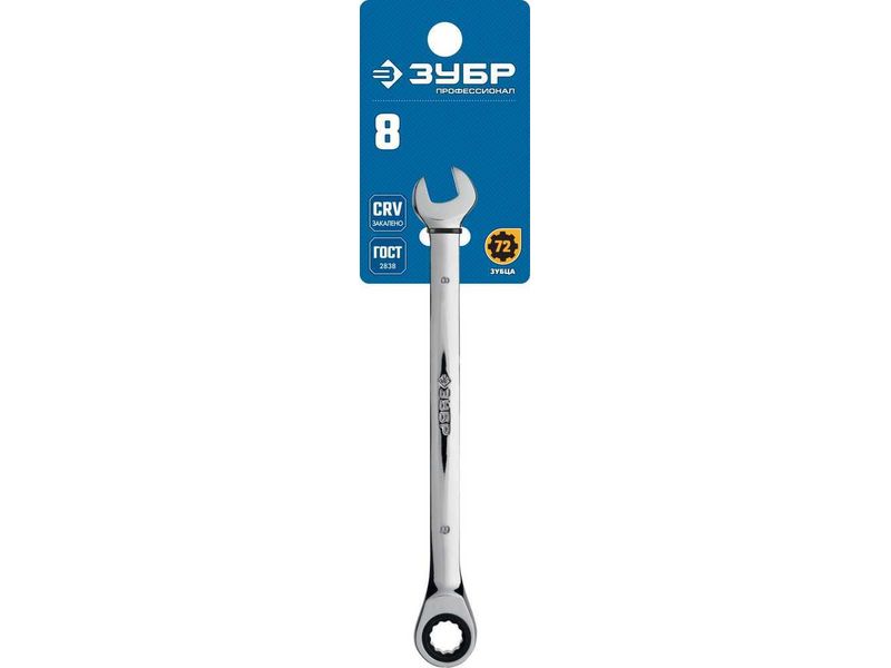 Комбинированный гаечный ключ трещоточный 8 мм, ЗУБР-343