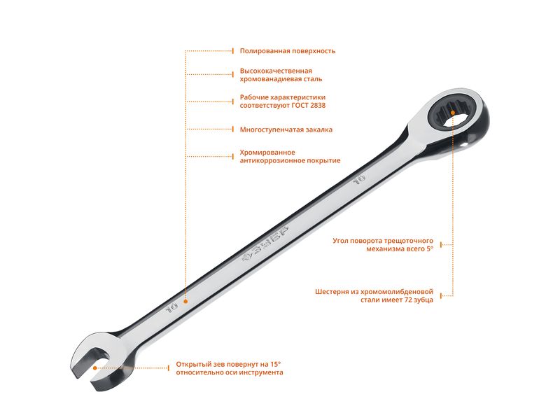Комбинированный гаечный ключ трещоточный 10 мм, ЗУБР-343