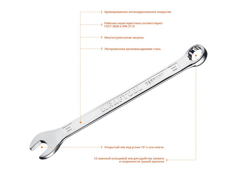 Ключ KRAFTOOL "EXPERT" гаечный комбинированный, Cr-V сталь, хромированный, 11мм-342