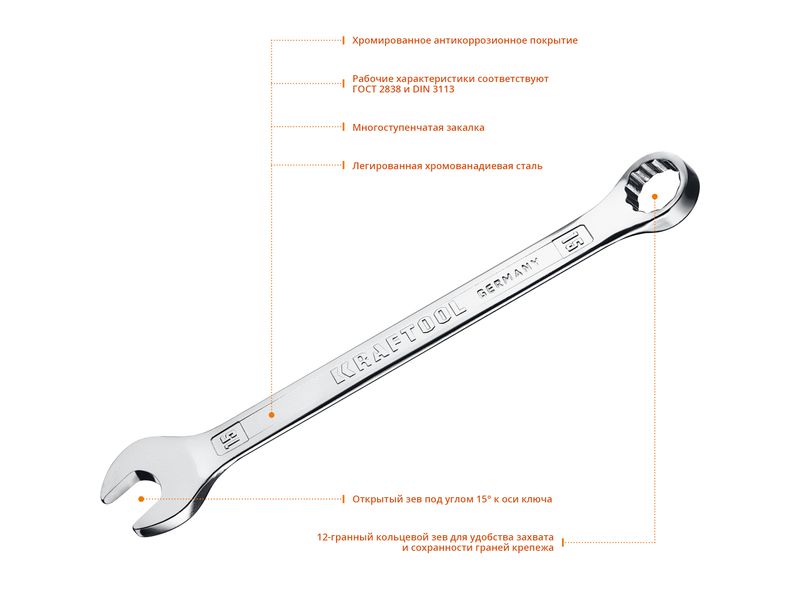 Комбинированный гаечный ключ 15 мм, KRAFTOOL-343