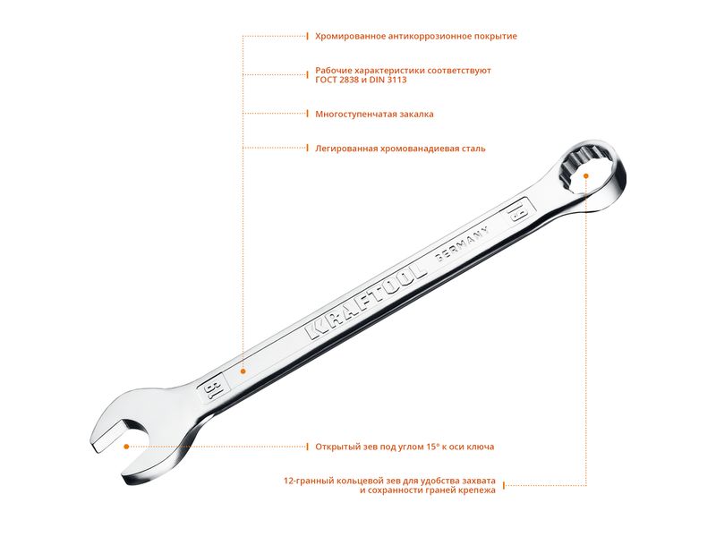 Комбинированный гаечный ключ 19 мм, KRAFTOOL-342