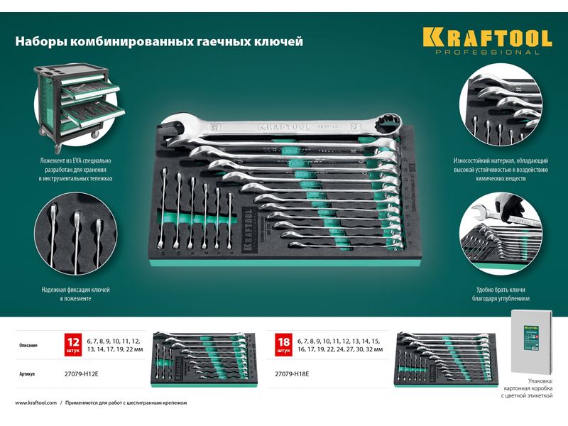 Набор комбинированных гаечных ключей 12 шт, 6 - 22 мм, KRAFTOOL
